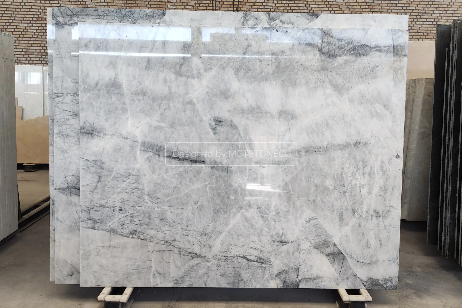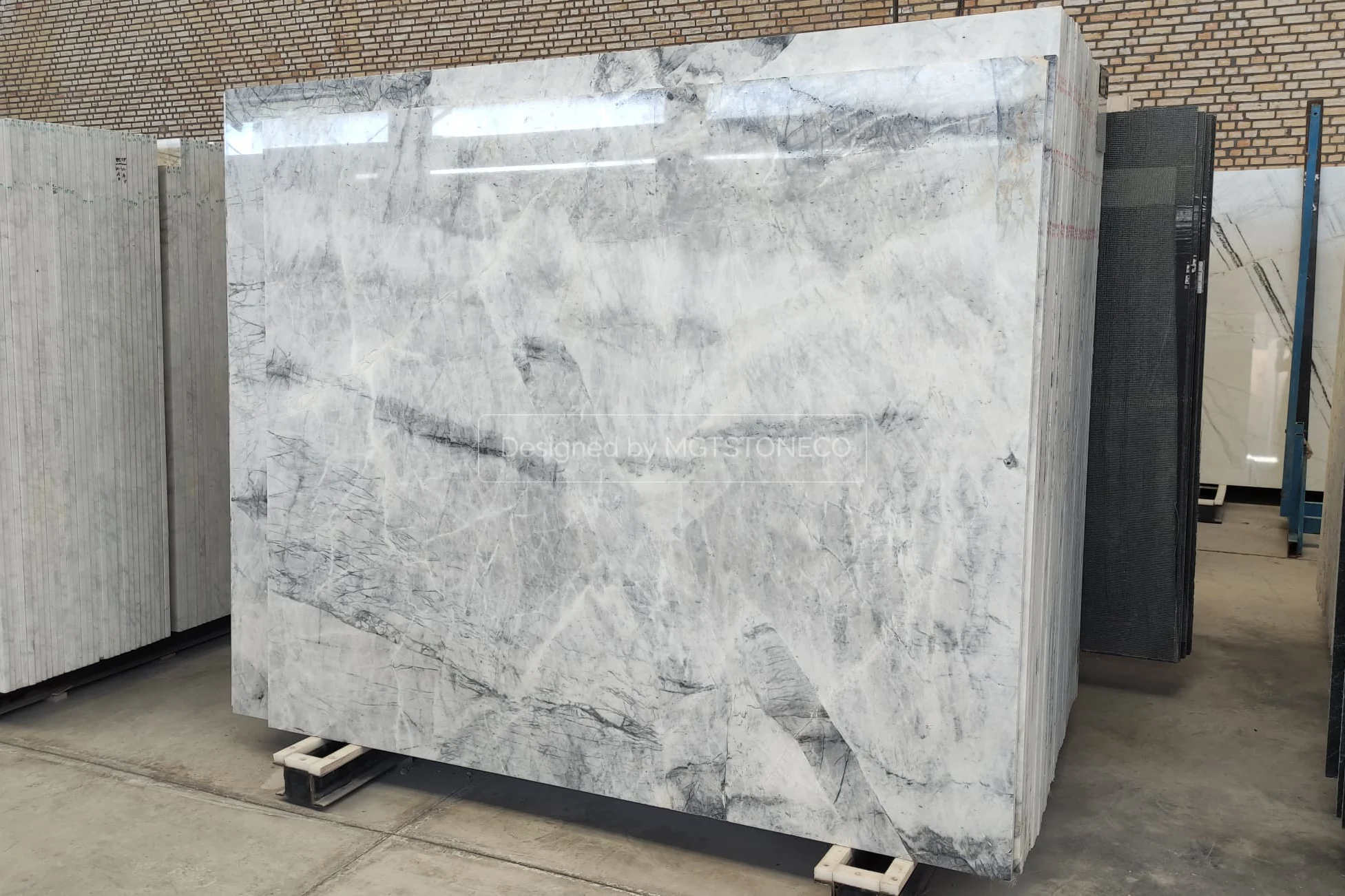 Frozen Blue Vein Marble (Frozen Crystal Marble) is one of the white marbles with blue veins with more brightness and shine. Elegant with a modern flair, this White marble features a white background accented with fine patches of blue. Its fine crystalline accents bring that WOW factor to any project.