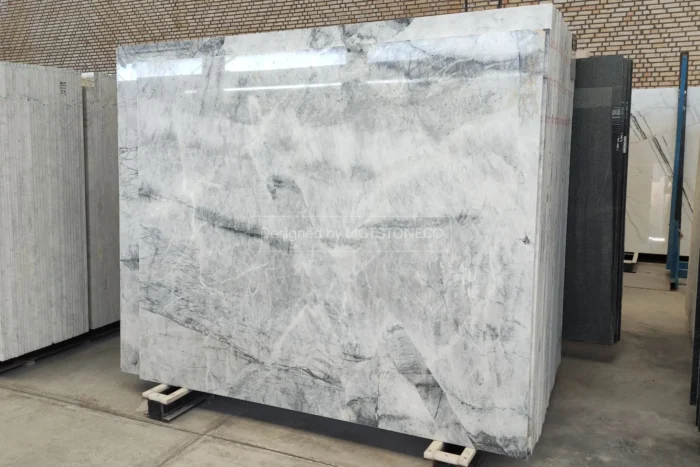 Frozen Blue Vein Marble has different types depends on the background color and the amount of veins. The first type has a white background with thick fusion blue veins. Now, this type of crystal marble is very popular and trendy for architectural projects in Iran. Another sort of marble has a gray background with very dark veins.