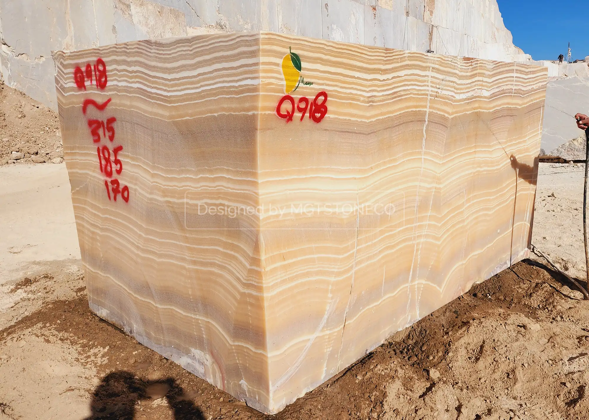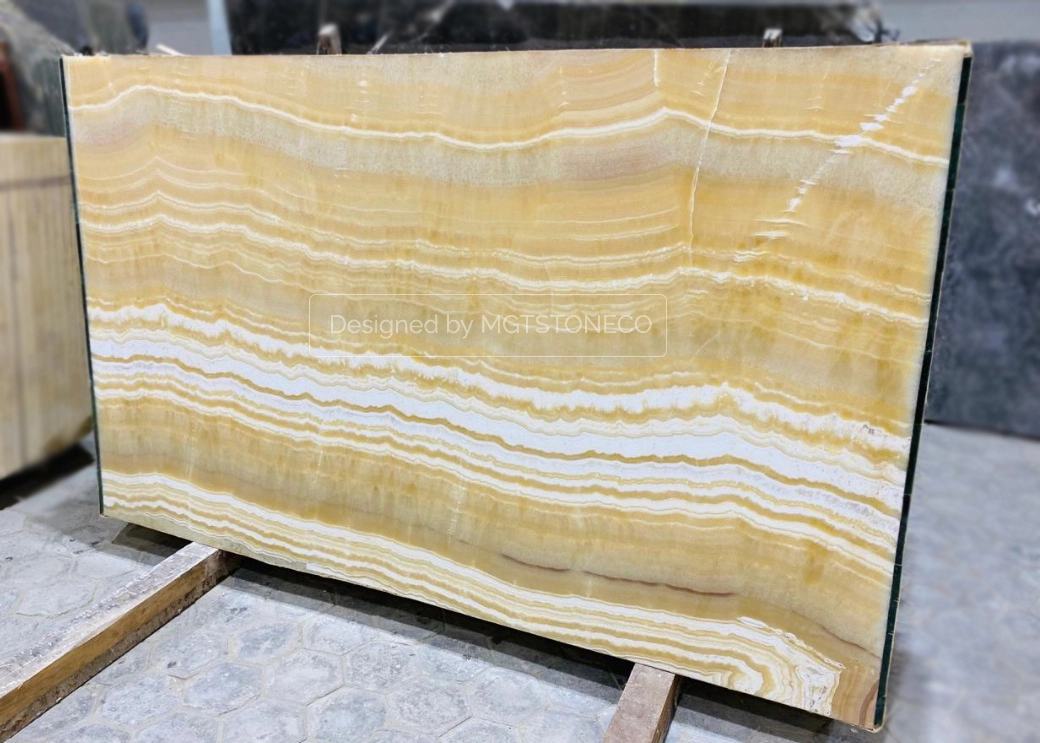 A: At MGT Stone Co., we offer Mango Onyx in various shapes including blocks, slabs, tiles, washbasins, and custom fixtures. We cater to bulk orders and provide these materials to manufacturers, contractors, and project owners looking for high-quality stone.